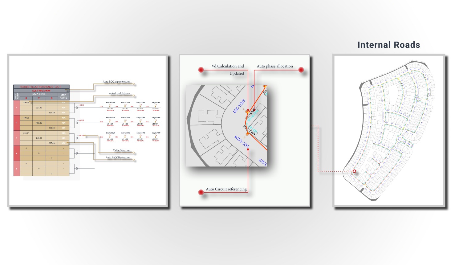 We have developed an automated Street Lighting Circuit design including Control Cabinet location, and type selection, cable and duct layout, and Single Line Diagrams.